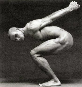 Extra control and authority for a position that demands a strong performance. Have him go "hands-only" for a more athletic position - just curl legs.